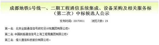 近日,成都地鐵5號線一、二期工程通信系統(tǒng)集成、設(shè)備采購招標(biāo)結(jié)果揭曉,中國通號集團(tuán)北京全路通信信號研究設(shè)計(jì)院有限公司攜手廣東創(chuàng)電科技有限公司中標(biāo),創(chuàng)電科技將承擔(dān)交流電源屏和UPS電源系統(tǒng)項(xiàng)目。
